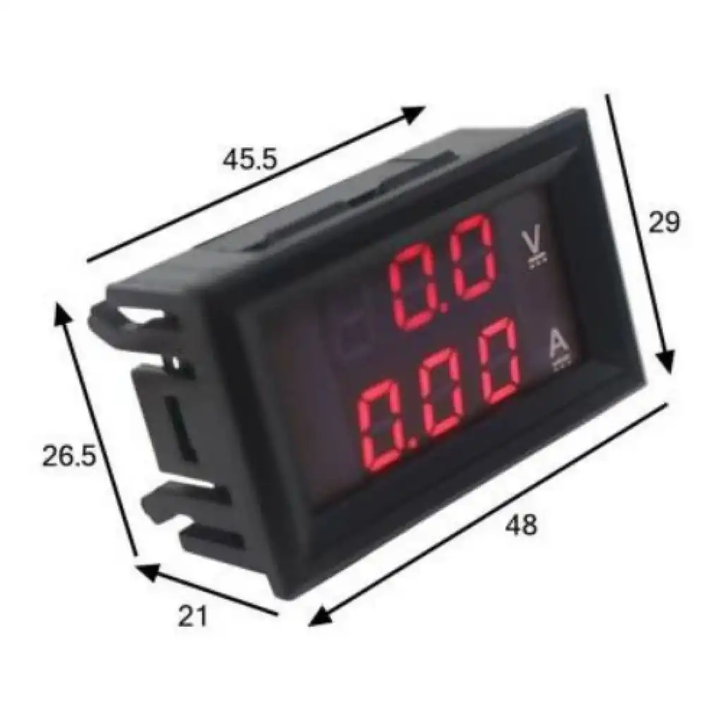 0-100V Arası DC voltajı ve 0-10A arası amperi ölçebileceğiniz panel tipi voltmetre - ampermetre.