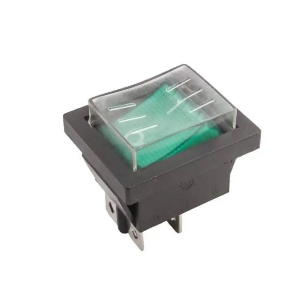 Türü: On-Off Rocker Switch Işık Rengi: Yeşil Boyutları: 35x25mm Terminal: 4 pin
